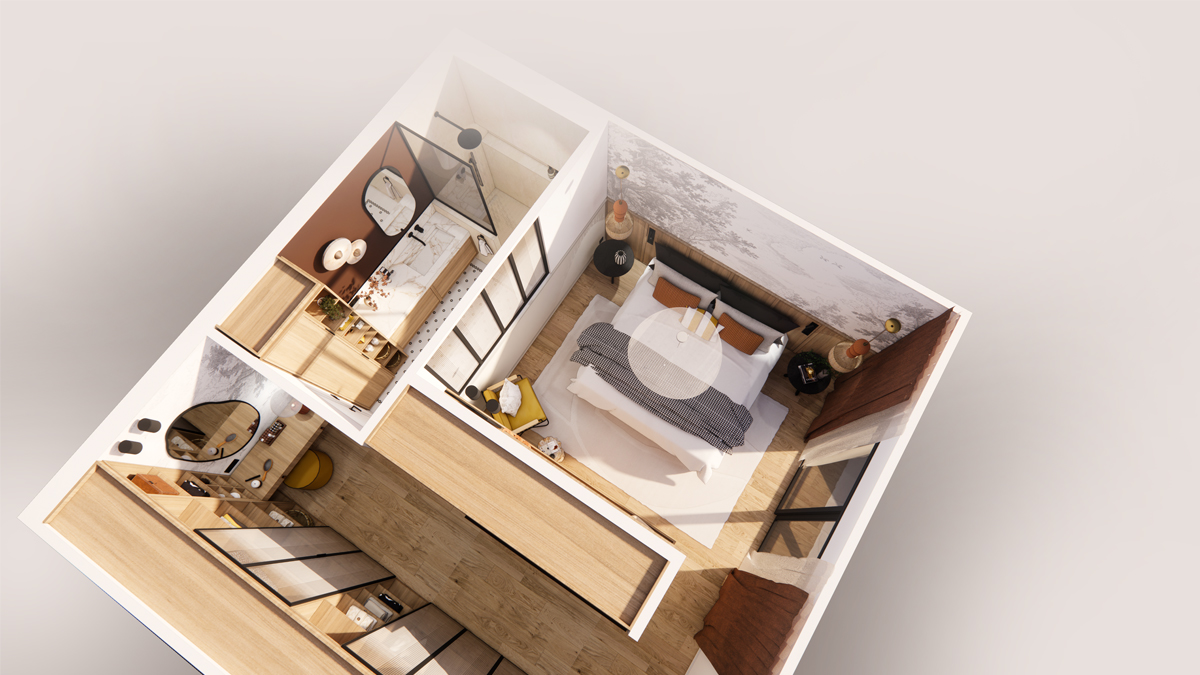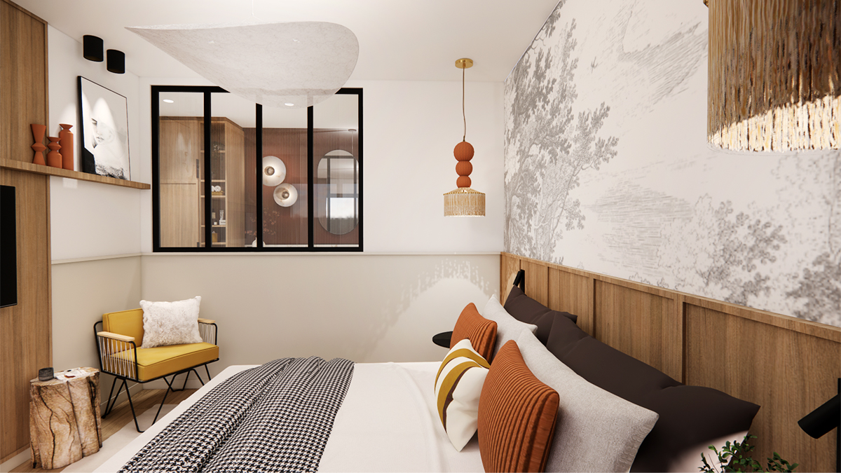 Suite parentale optimisée, pensée dans un esprit contemporain et élégant.