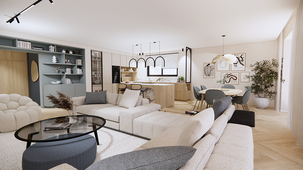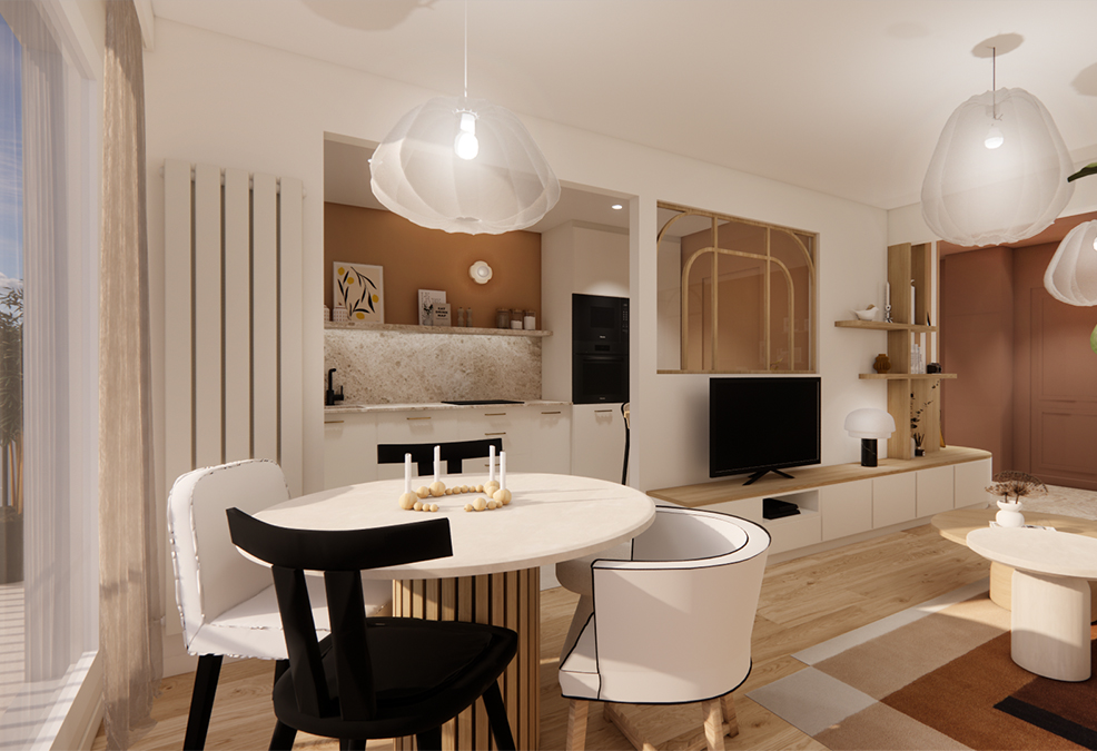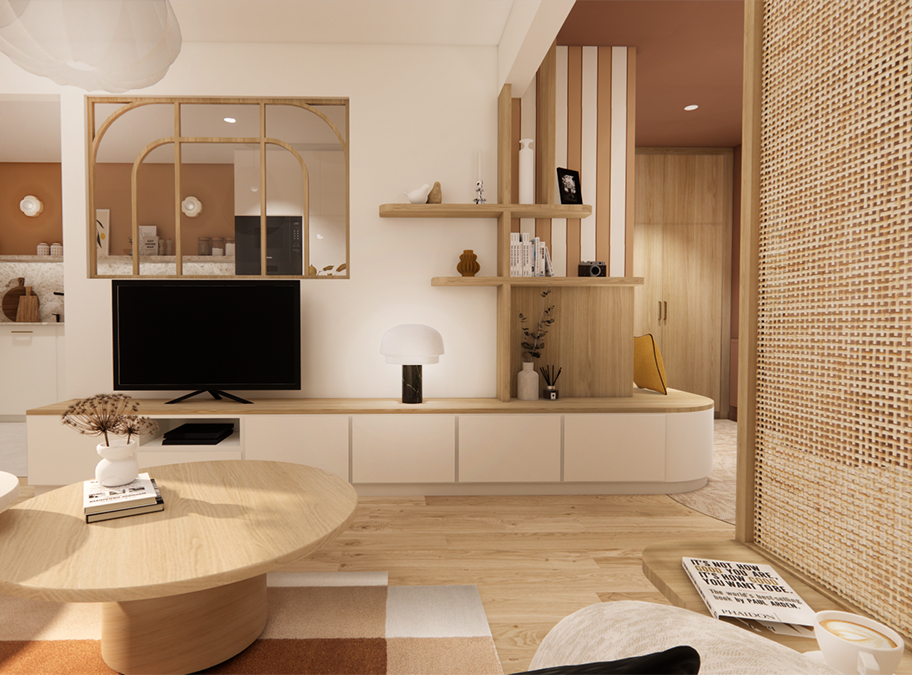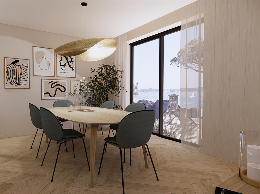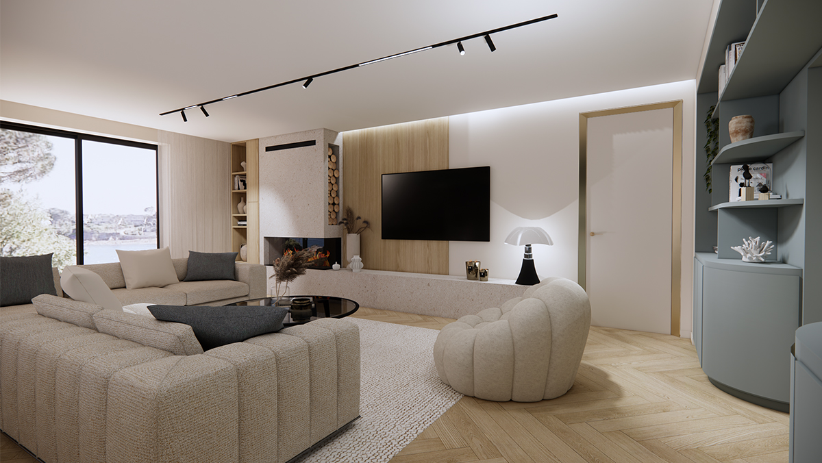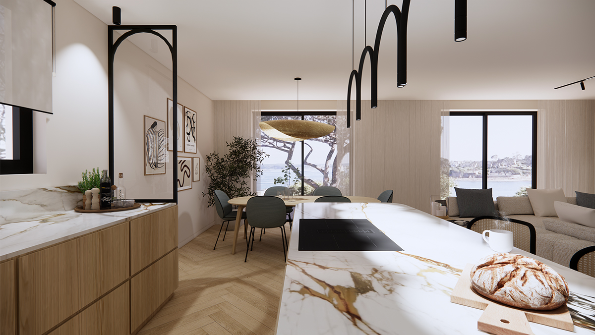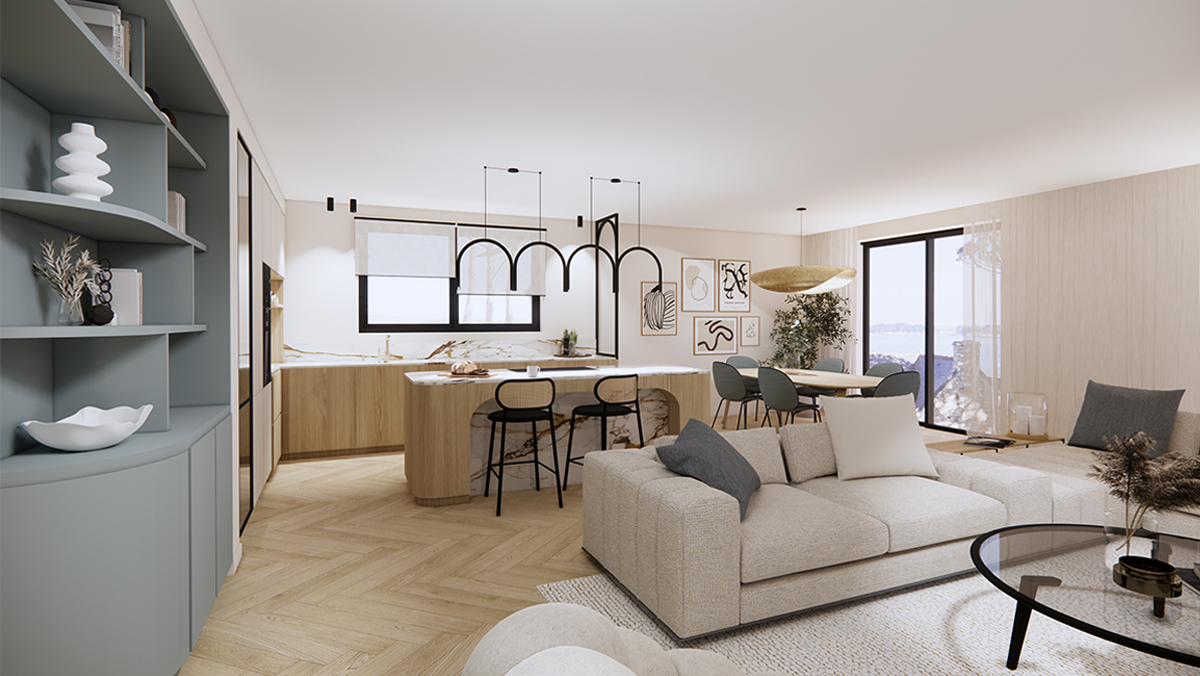 Agencement & Décoration d’un Salon Séjour Cuisine d’une maison vue mer