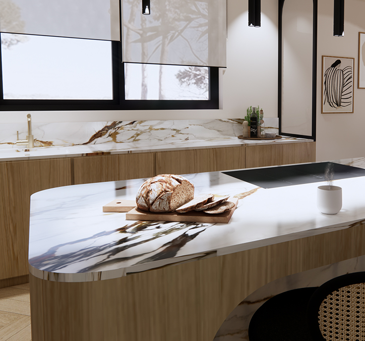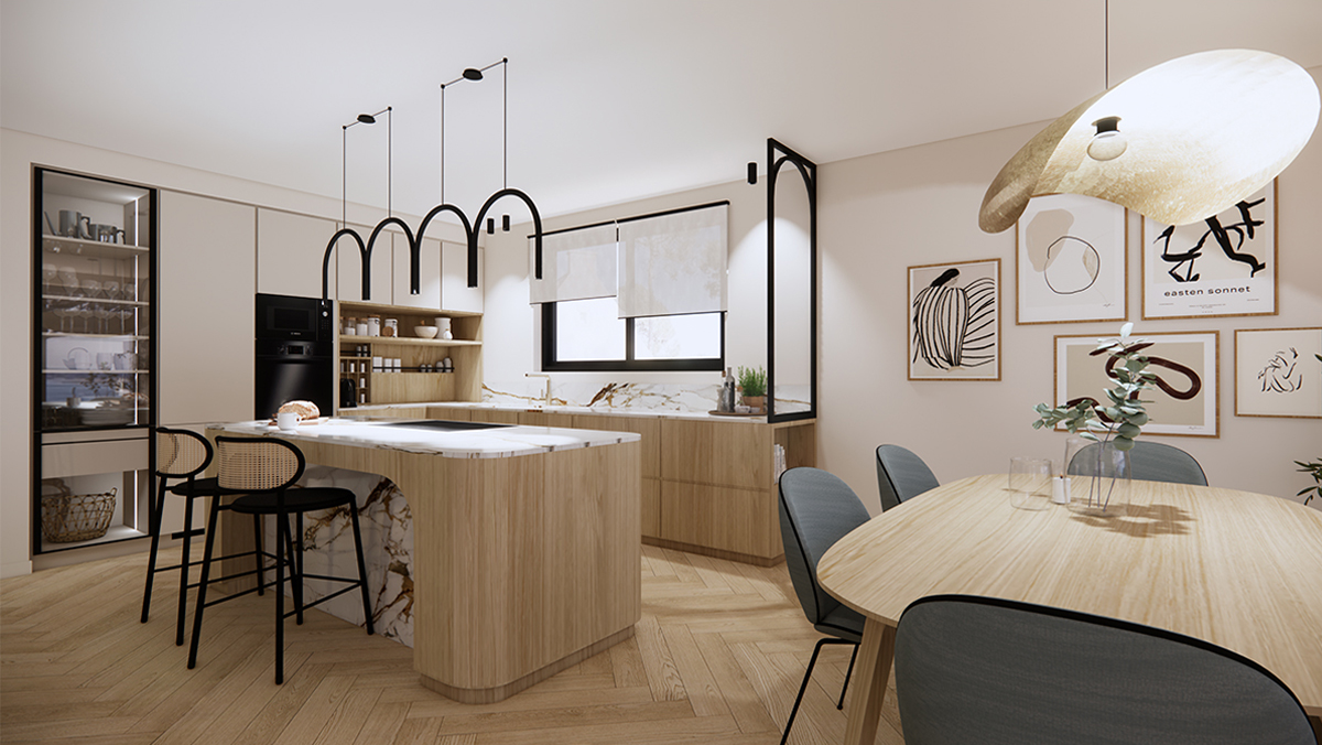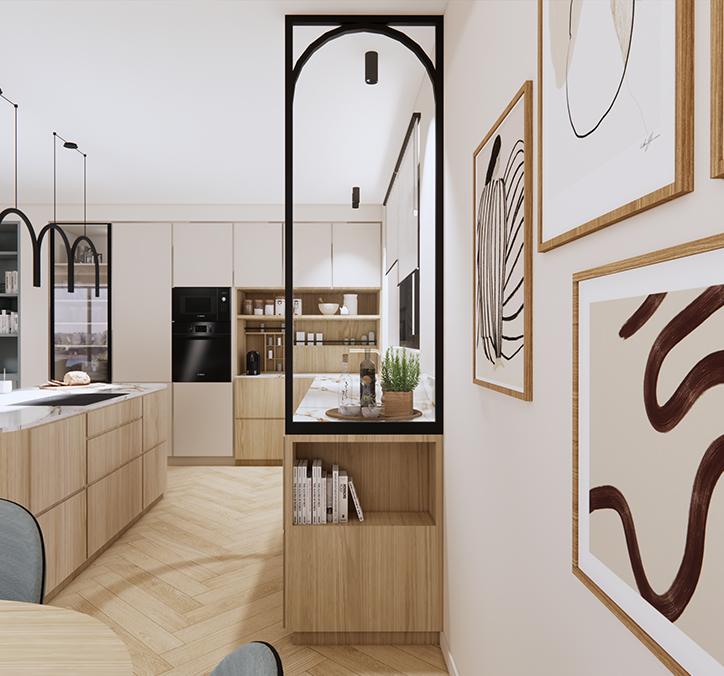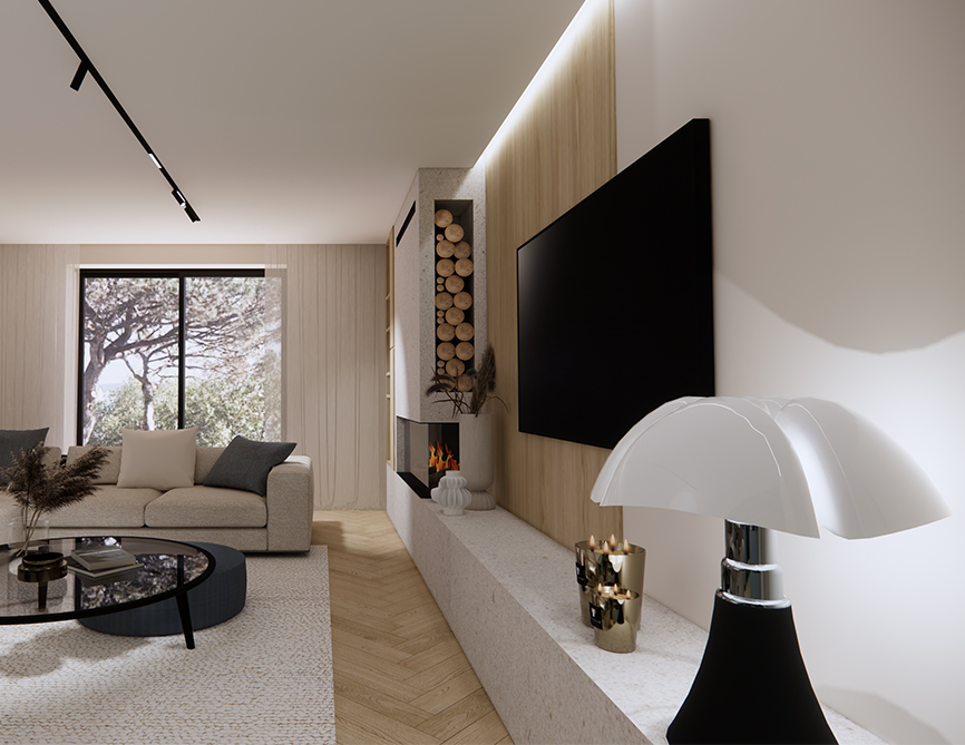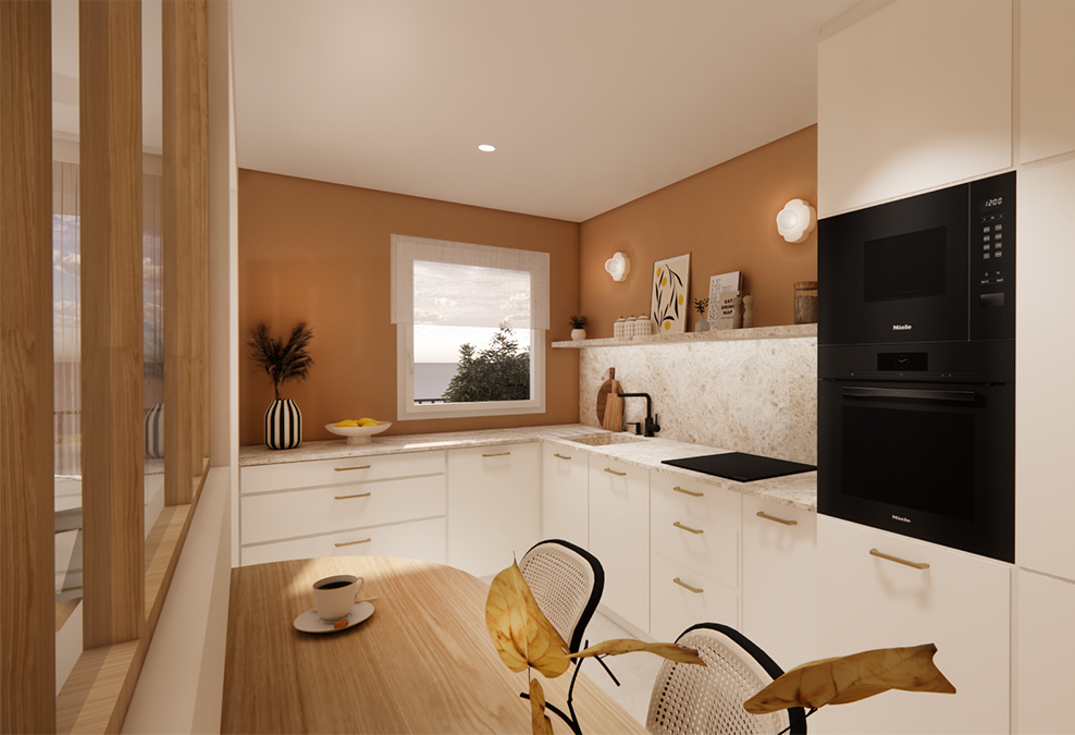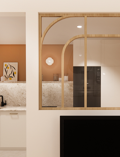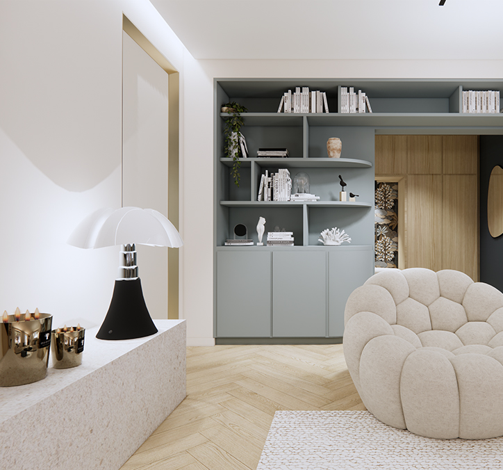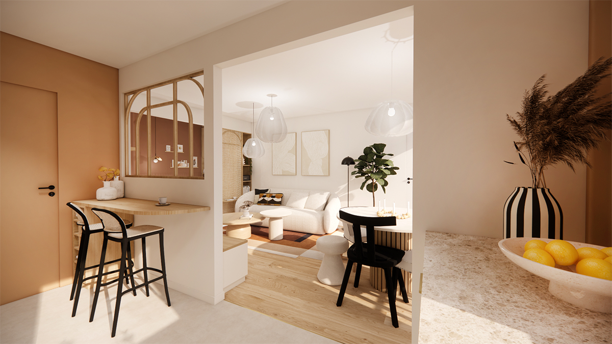 Agencement & Décoration d’un Salon Séjour Cuisine d’une maison vue mer